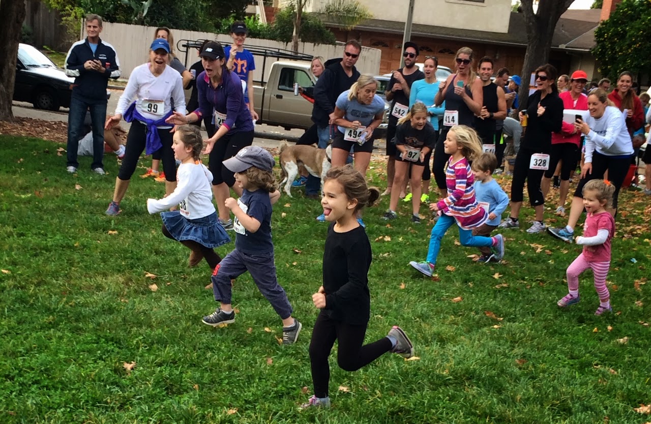 I had a new running partner for the annual Santa Barbara 4-Miler Turkey Trot this year...Sophie, my 7-year-old daughter! Despite having only run a mile once before, she said she was game this year. I thought I was going to burst with excitement. I have always wondered when and how one of my girls might join in for a race, and all it took was the promise of free powdered doughnuts! (Sophie is ready to run!)We started off with a few sprinkles of rain as a record 700 runners filled Hollister Avenue to get their Trot on. The Turkey Trot is quickly becoming a national phenomenon, topping out at 800,000 participants last year (25,000 in San Jose, CA alone) and possibly crossing 1 million this year. The SB Turkey Trot was no exception, already 7-8 times bigger than my first running over a decade ago. But thanks to a nervous Sophie at my side, it felt like my first! She took the rain in stride, using it as an excuse to wear as much pink as possible. (Sophie joins the fun! Check out those inov-8 x-talons...size 2!)Running beside Sophie was such a joy, and if I smiled any harder I was likely going to break my face. Such a thrill! We jogged along at a steady pace, enjoying the costumes around us, and took our first walk break at mile 1. A 10:30 min/mile...I was so impressed! By mile 2, she had shed nearly all of her clothes (making Daddy the sherpa) and took to the trails aside the bike path. "Trails feel faster, Daddy". Chip off the ole block, I tell ya. (Turkey hats rule!) (Sophie sheds a layer and takes to the trails!) (Thank you, thank you, thank you photo gods for this one - grandparents, prints are on their way!)By mile 3, Sophie was a panting mess, but pressed on, determined not to be last. She swore she would never do this again, and I told her that all runners say that at least once in every race and forget all the hard parts immediately after crossing the finish line. Once she smelled the doughnuts, she sprinted to the finish and right on through to the snack line. I think she ate three before taking a breath, and the powdered sugar soon covered her face like a culinary explosion. She dropped a handful of sweat-sticky doughnuts into my palms, and we plopped down and easily negated all the calorie burn of our 53 minute 4-miler with a blur of NOM-NOM-NOM. (Hooray for Sophie!) (Doughnuts never tasted so good)By the time we headed to the car, Sophie was already talking about coming back next year. She busted up laughing and said "you're right, Daddy! I have already forgotten all the hard parts. That's so cool." I think she's hooked! Papa (my Dad) said it best...I've got maybe 12 years tops before Sophie Jane leaves me in the dust. A little more than a decade before she desperately asks me to take down this post so sports journalists and would-be boyfriends stop linking to it and making jokes about powdered doughnuts (never!). I sigh knowing I likely have less than two years before holding hands with Daddy on walk breaks isn't cool anymore. As eager as I am to see how she blossoms, my heart already clutches fiercely at these fleeting moments. I guess that's what parenting is all about. ...and we'll keep our eyes on Quinn for the kids race next year! ;-) (A very stylish 3-year-old Quinn chills with Martha - you're next, kid!) (Toddlers take on the kids race!)Happy Thanksgiving, all! - SD