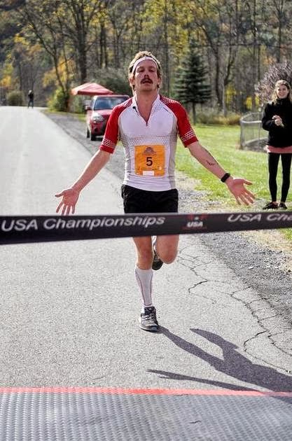 (New 50-Mile National Champion Matt Flaherty wins in a stunning 5:28! Makes it look good with the mustache, too. ;-) )