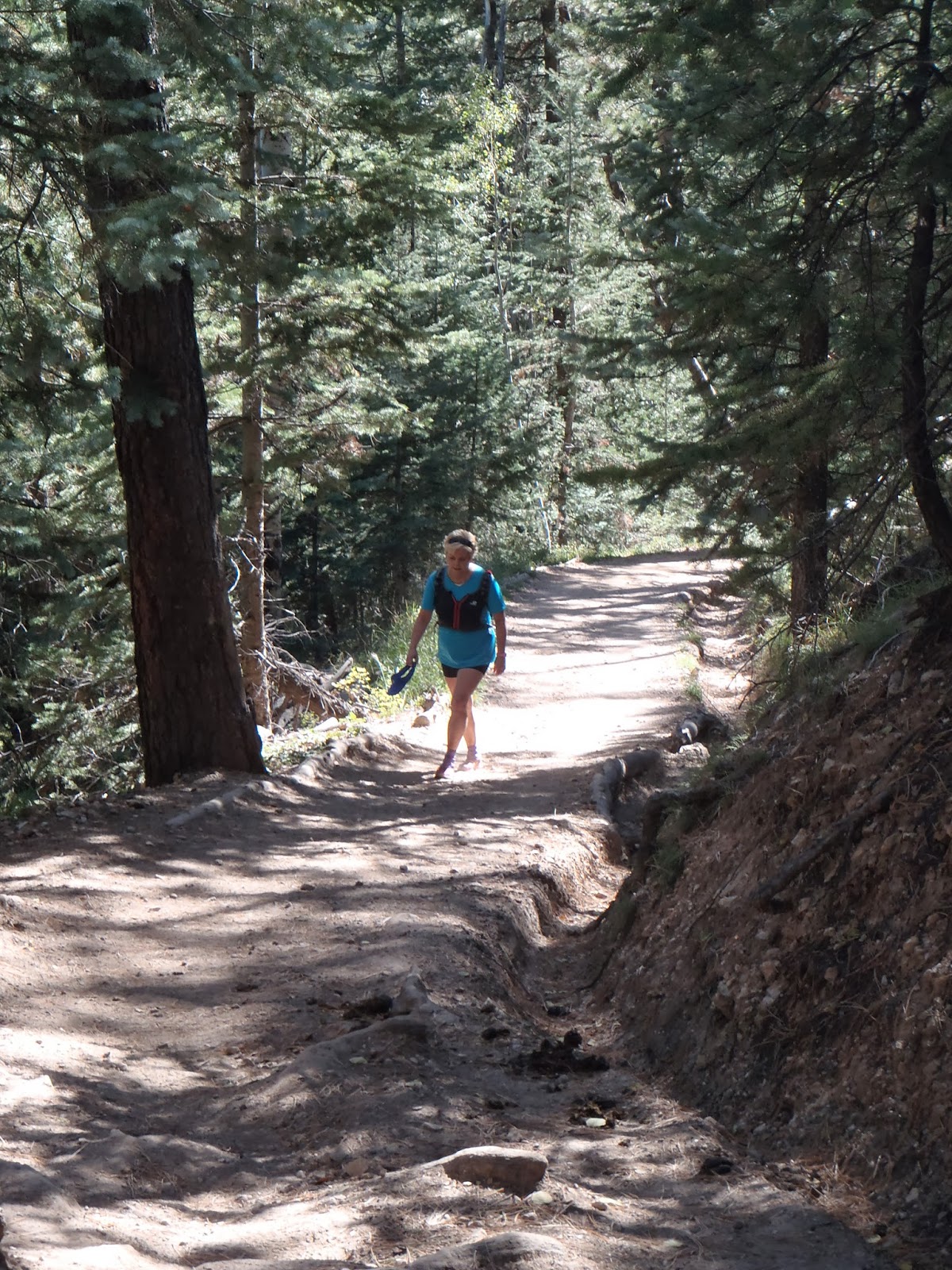 The miles between aid stations in this race are generally long, normally between 7 and 10 miles. This next section going to Washington Park includes a three-mile section of exposed burn-out area and it already was becoming very warm. As expected, my two hand-held bottles were not enough, so I dipped them into a couple passing streams, deciding to take the chance rather than going into dehydration. The water was cool and tasted amazing.
