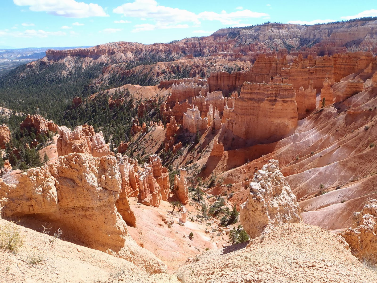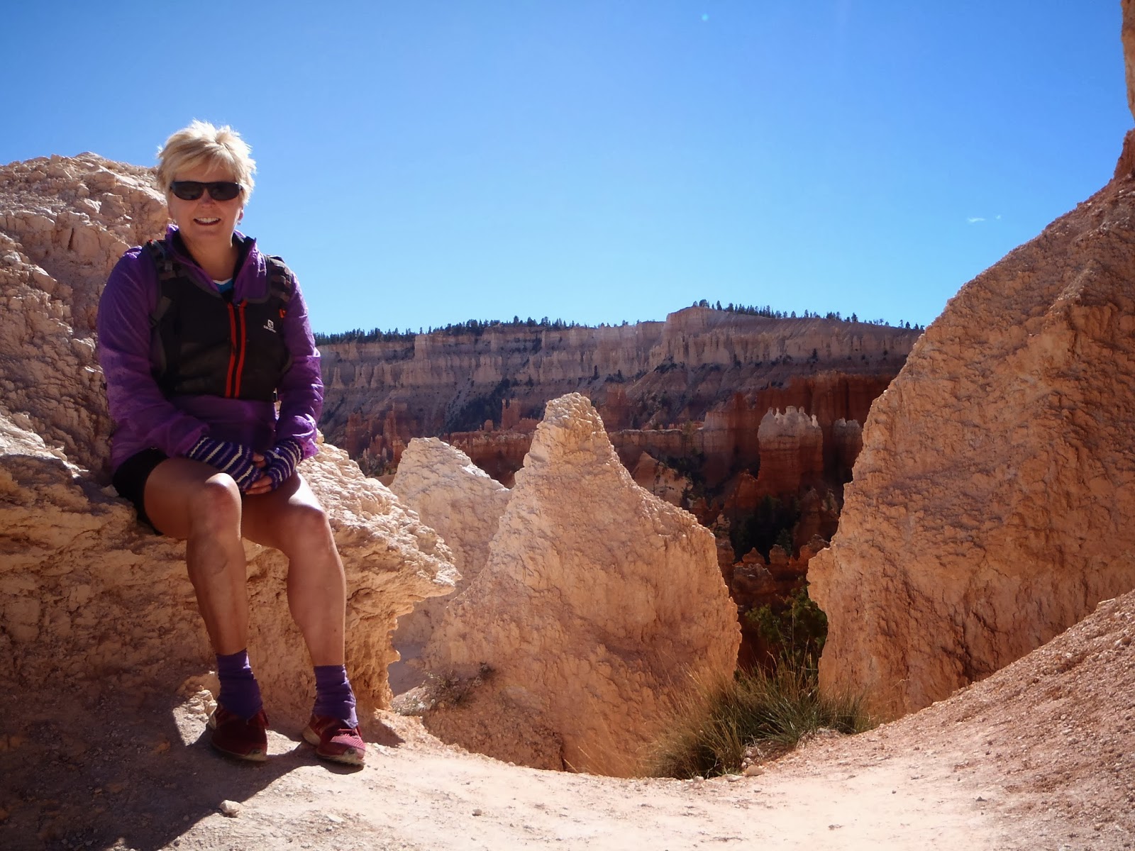 Neil and I recently returned from a trip that took us to the Grand Canyon (North Rim), Zion National Park, Bryce Canyon and the Canadian Rockies (Banff, Lake Louise and Emerald Lake). It was a very active vacation! The North Rim of the Grand CanyonOur cabin where we stayed - it had some unwanted guests - mice. We should have clued in with all the Hanta Virus warnings. We caught them eating Neil's Ginger Snaps at 3 AM. Good thing Neil is a rodent control expert and was able to chase them out and secure us a few hours more of sleep. The Lodge at the North Rim - beautiful big rooms for nightly entertainment and views of the canyon. Sitting on a stone wall at the Lodge - spectacular views. Neil enjoying the views on the Adirondack chairs at the lodge. Heading down the North Kaibob Trail into Roaring Springs Canyon which leads to the main Grand Canyon. Rock overhangs! It was fun running down on fresh legs. Last time we were here we had already completed Rim (South Rim) to Rim (North Rim) and were heading back to the South Rim. It was great to just enjoy the outing. More Kaibob Trail. The trail continues across the canyon. Large canyon walls - we look pretty small! Pathways to run on with drop offs - we stayed close to the walls! Almost done - the climb back up was tough (high altitude!)but not as bad as the last time. At the top of the trail on the North Rim. The North Rim has an Alpine forest at 8,700ft above sea level which is quite a contrast to the rest of the Grand Canyon. It was a great out and back, fun running down and an awesome climb up. We went to Roaring Springs (the main water source for the whole Grand Canyon) and then turned around...our plan was to get to Zion National Park before dark that day. Zion National Park Climbing up Walters Wiggles - this was fun! 21 steep switch backs that are a marvel of trail engineering. We hiked/ran down here on our last trip - the Zion traverse, at the end of our long journey in May. Great to revisit on fresh legs. Switch back! The trail up Walters Wiggles takes you to the trail to Angels Landing. This is the most popular trail in Zion National Park. It was very busy with tourists, many griping the support chain for dear life as they made their way up and down. Good thing the chain was there as the drop offs were severe - 1,500ft straight down to the canyon floor! High walls of rock. Plenty of slickrock to play on. Plenty of squirrels around - last visit Dave dropped his pack before the climb up the North Rim and the little critters chewed through his pack and ate his Fig Newtons. Looks like this guy was eating bread - another tourists lunch. The trail to the Narrows - you can start your canyon water experiences from here. The sport activity is called Canyoneering where you wade or swim through water using the riverbed as your trail. Bryce National Park From Zion National Park, we enjoyed a day trip to Bryce National Park, just over a 2 hour drive away. The Lodge at Bryce Canyon. There is accommodation in the rustic lodge or you can stay in a cabin close by. There is a path from the lodge that takes you to this overlook of Bryce Canyon below. You would have no clue this view was there unless you come and stood on the canyon rim. Many trails to explore! We chose the Fairyland Rim Trail which provided us with spectacular views of the many formations in the canyon and the Queens Garden trail that took us down into the canyon and up showing us many incredible rock formations... one of which is said to resemble Queen Victoria. It actually did! Views from the Rim Trail. A perfect hole in the rock to frame the perfect picture! Lighter coloured rock on the other side. Having a seat on an inviting rock to take it all in. Neil running up to the Bryce Canyon Lodge - a tourist shouted out "show off|". Banff, Emerald Lake and Lake Louise We arrived in Banff to much colder temperatures than we had been experiencing south of the Canadian border. For our first outing we climbed Sulphur Mountain which is 7.800 feet. It is a steep climb from Banff where we came upon snow about half way up the climb. We also visited Lake Louise and Emerald Lake some of our favourite spots in the Canadian Rockies. It was snowing lightly which made some of the hikes so beautiful. Snow in the Mountains. On the trail up Sulphur Mountain. Banff is way down there - it was a big climb up! We opted for the cable car down. Views from Tunnel Mountain in Banff, the local "Grouse Grind" climb. Top of Tunnel Mountain with the snowy Peak of Sulphur behind. Emerald Lake, one of our favourite spots! Mt. Burgess, towers over Emerald Lake. We have climbed this one. Wapta Mountain, with the Wapta Highline Trail that passes through the Burgess Shale, a World Heritage site of geological significance. The shale beds here contain marine fossils laid down approximately 550 million years ago when the area was all under water! The end of Lake Louise looking back at the Fairmont Chateau Lake Louise. We enjoyed a few more nights in Banff to end a great vacation of Canyons and Mountains!