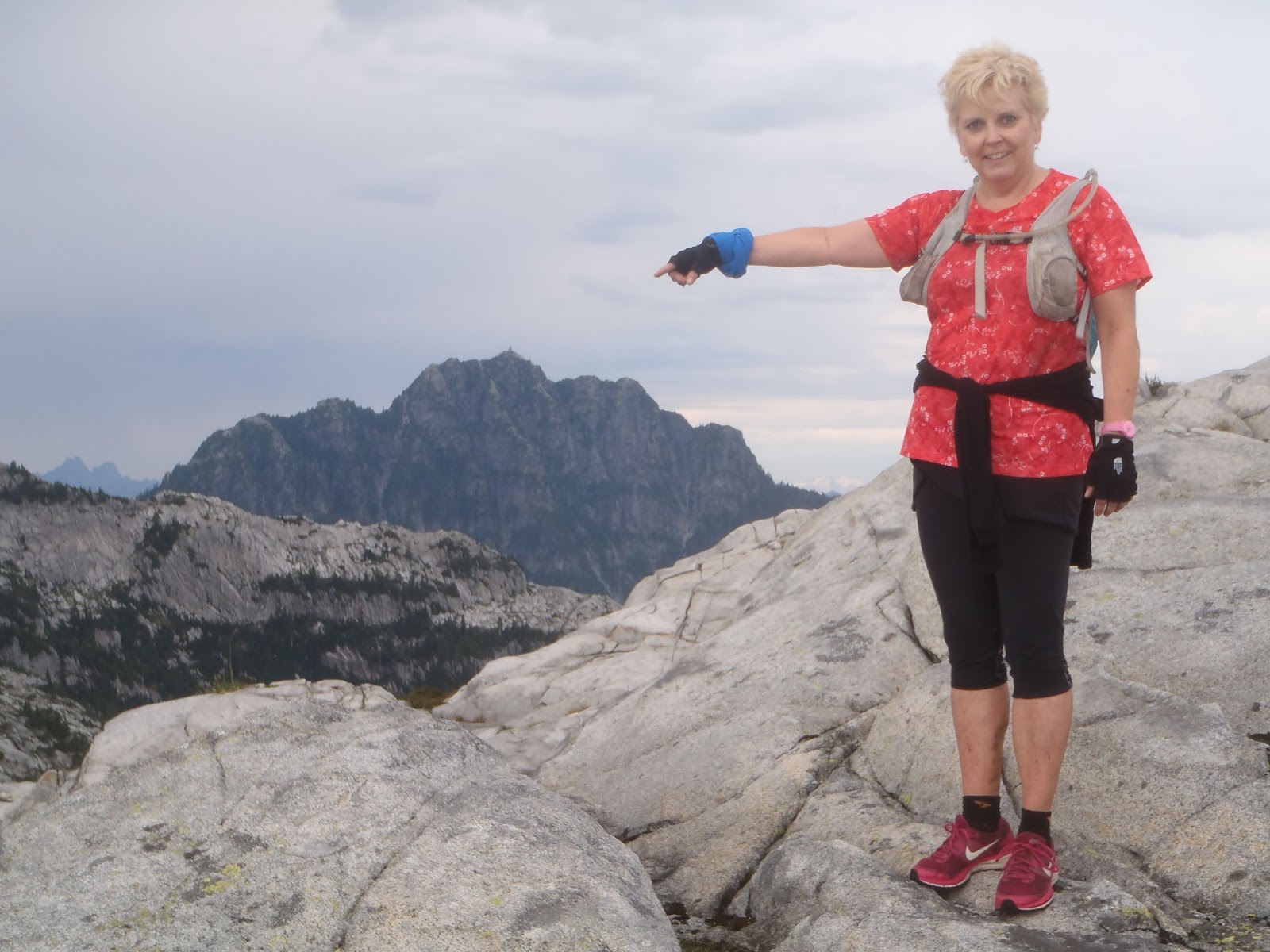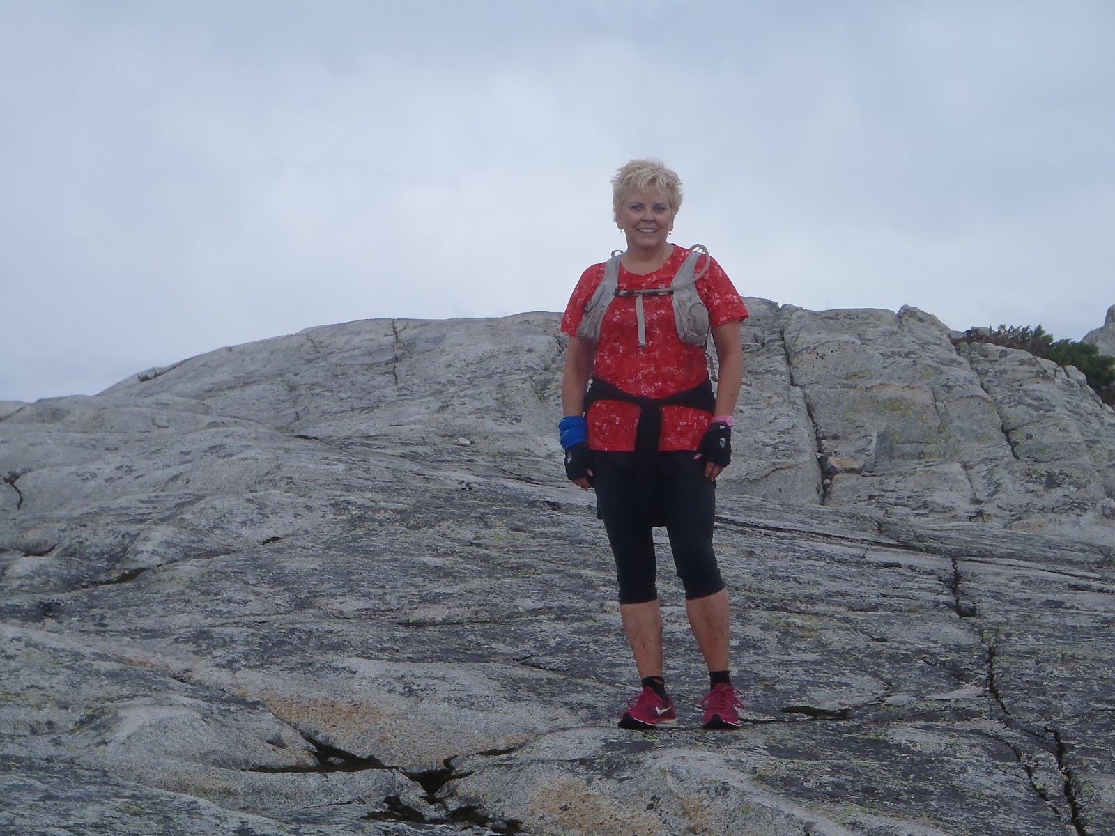 Sitting on a stone wall at the Lodge - spectacular views.