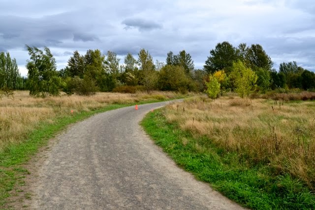 The loop had a straight stretch leading into the start/finish on a grass field beside Lake Washington, before a short straight section on a paved path. From here you ran onto a crushed gravel walkway and did a little lollipop loop around a small hill. Back along the gravel path and onto the straightaway stretch of a track. Off the track and through a fun little rolling doubletrack in the woods and blackberry brambles. Down a short little hill and onto a road for about 200m before ducking into "Fin City"; a collection of submarine fins jutting out of the grass. That's it. Over and over and over and over and over and over again.