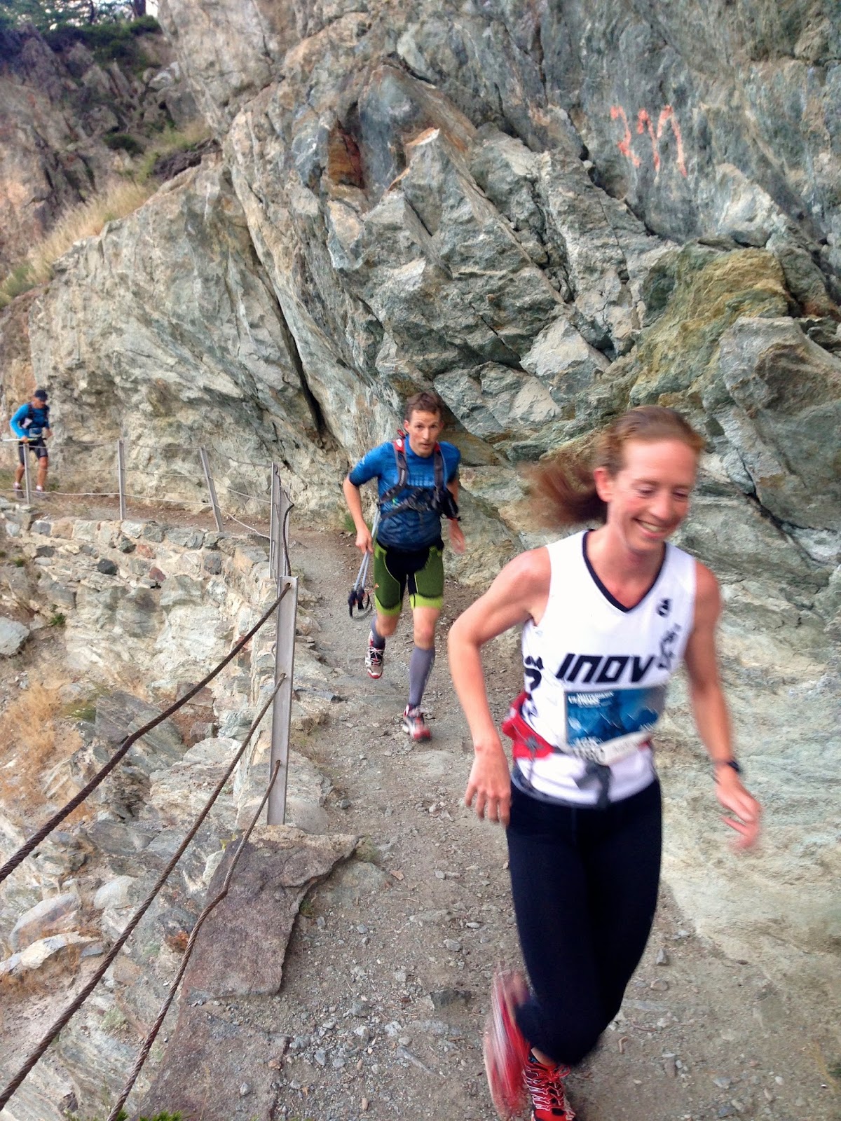 Kilian Jornet had won the race in 4:43:05, with Luis Alberto Hernando Alzaga (4:44:47) and Nicola Gollinelli (4:45:57) coming in soon afterwards, all of them well exceeding the expected 5:15 winning time. Swiss runners, Marc Lauenstein (Sierre-Zinal winner) and Ultraks ambassador Martin Anthamatten were fourth and fifth respectively. Emilie Forsberg (5:41:16) handily won the Women’s division, with Silvia Serafini (5:44:37) having a strong second half to claim second, and Nuria Dominguez Azpeleta (5:59:19) passing Anna Lupton in the final mile for third. Eirick (5:03:15) had held on for 9th after running out of gas in the final climb, while Anna Lupton (6:01:59) held on for 4th, and Florian had completely imploded but hung tough to finish just a few minutes ahead of me. Not bad, team! We're now 4th in the Skyrunning team competition with one race left in the Series!