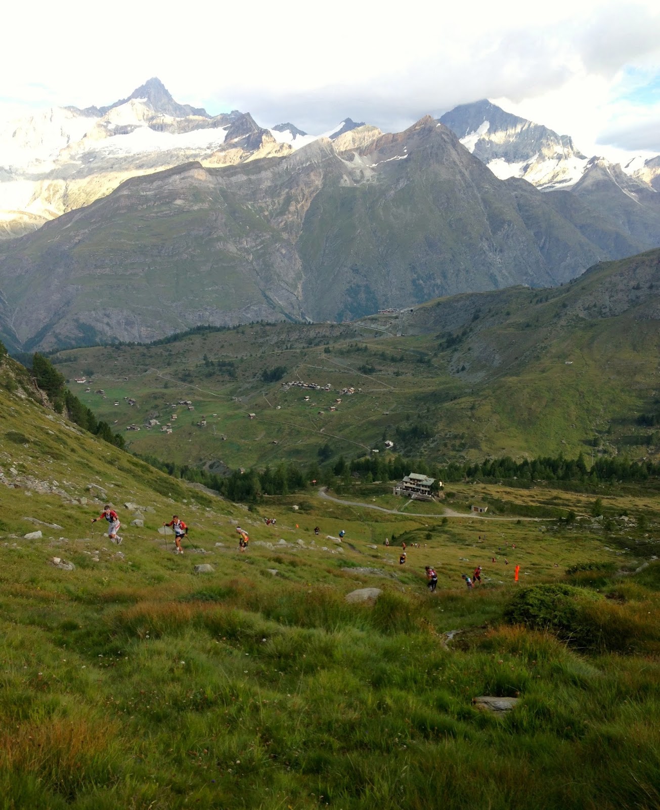 The climb was a beast, and I couldn’t help but lose about 20 places to the hiking-pole-savvy European runners blazing trail left and right (most of them view the actual trail as a “suggested route”, which is allowed). The view at the top was incredible, and we could count 29 of the 45 big Swiss mountains on the crystal clear horizon, as well as a huge permanent ice glacier. Amazing! As a side bonus, I was having no trouble with the altitude and cruising along nicely. I guess once you shock the lungs at 14,000’ in Colorado, acclimation comes quick!