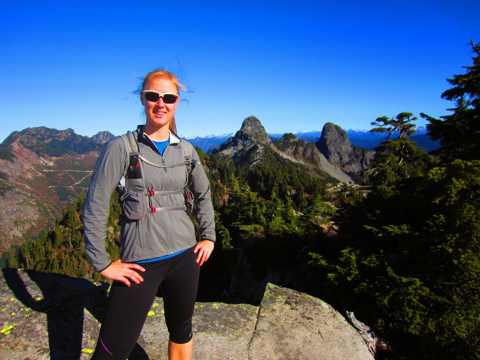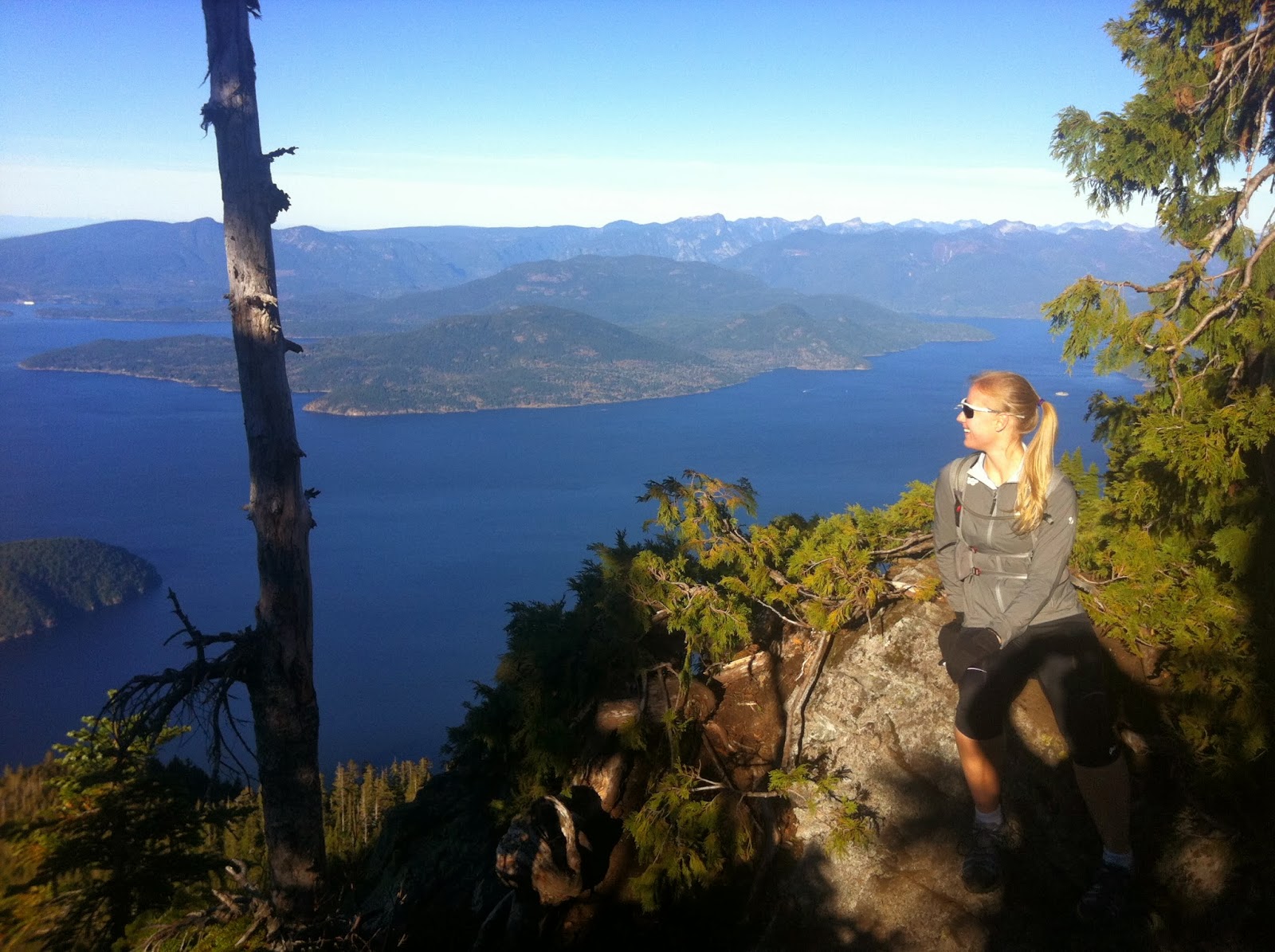 I've been wanted to run or hike the Howe Sound Crest Trail for many years now. It's at the top of my local bucket list. I'd been hoping to cross it off this summer; but didn't want to compromise my newly-healed stress fracture. So instead, a couple running friends and I had toyed around with the idea of scouting the route; doing the first few peaks to get an idea of the terrain and how great a challenge the whole trail would be. Today our scouting trip finally came to fruition. And what a day it was! The Lions Francine, Cam and I started at 9am from Cypress. We found our route and were pleasantly surprised that the first 3km of the trail had been recently reconstructed and was very runnable. So groomed and wide you could probably take an off-road wheelchair on it in fact! On our return trip we met some Park Rangers who informed us that eventually the improved trail would extend all the way to the top of Saint Marks. Our glee was overtaken by grunts as the trail turned into the rocky, root-filled remaining 2.5km ascent of Saint Marks. Saint Marks is the first mountain you 'bag' along the Howe Sound Crest Trail and is a relatively popular day hike. We were quite surprised to actually make the ascent a little over an hour after we'd started. Humm, we thought, this is going rather well! The view over Howe Sound was incredible; not a cloud in the sky after almost 2 weeks of fog. The sun was warm on our backs and the air was crisp. We had timed things right. I pointed out the various islands to Cam and Francine and sent a hello to my mom, who had always wanted to hike the Lions, but won't be able to cross that particular item off her bucket list. Looking over Howe Sound. Bowyer Island in the foreground, Bowen Island to the left, Gambier to the right, Keats Island and then the Sunshine Coast in the background. Stunning! Taking in the view (Photo Credit: Cam Eldred) Proof! Francine & I at the top of Saint Marks (Photo Credit: Cam Eldred)We'd summited Saint Marks faster than anticipated, so we carried on towards Mt. Unnecessary. As we descended Saint Marks to the saddle, I commented that hey, the trail really wasn't as rugged as I'd been lead to believe. Well, I spoke to soon. A signpost warned us that the maintained trail was about to end. And it did; fallen trees lay helter skelter and the singletrack trail became more overgrown and less developed. That said, it was passable and there were ample trail markers, but it was certainly a hike and not a run. There was a little false summit on the way, that I was certain was the South Peak, but according to our Park Rangers was just a false summit of Mt Unnecessary. We took some time here enjoying the view, taking some photos, and snacking. Why do yoga in a studio? (Photo Credit: Francine Hong) Not too shabby a view! (Photo Credit: Cam Eldred)We continued on upwards for a stretch until we made it to the South Peak. Like I said, this was a bit of a surprise as I'd thought it was the North Peak. Francine & Cam trekking up to the South Peak of Mt Unnecessary With the Lions in the background (Photo Credit: Cam Eldred)Even though we'd gotten the 'money shot' we were looking for I didn't want to turn around before summiting the North Peak of Mt Unnecessary as well. I'd been joking all morning that we would end up doing the whole HSCT, well, maybe not, but I at least wanted to finished first third. So we carried on, down the South Peak to the col, or saddle. This section had a small rock face section with a rope and a minor ledge to navigate. No problem for us, but I wouldn't want to tackle it on a slick, wet day. The North Peak was a mere 20 minutes away. And at 1542m, the highest point on the HSCT as long as you don't actually summit the West Lion. Trail markers were plentiful but this particular sign was rather weather-beaten! Does it get any better than this? What a fantastic day! It was a 4.5 hour run trip for us (not including photo and food breaks) and I'm just thrilled to have gotten as far as we did, even if it was 'the easy section'! Next year I am crossing the whole HSCT off my list and I sure hope to have as nice a day and as great company to do it with!
