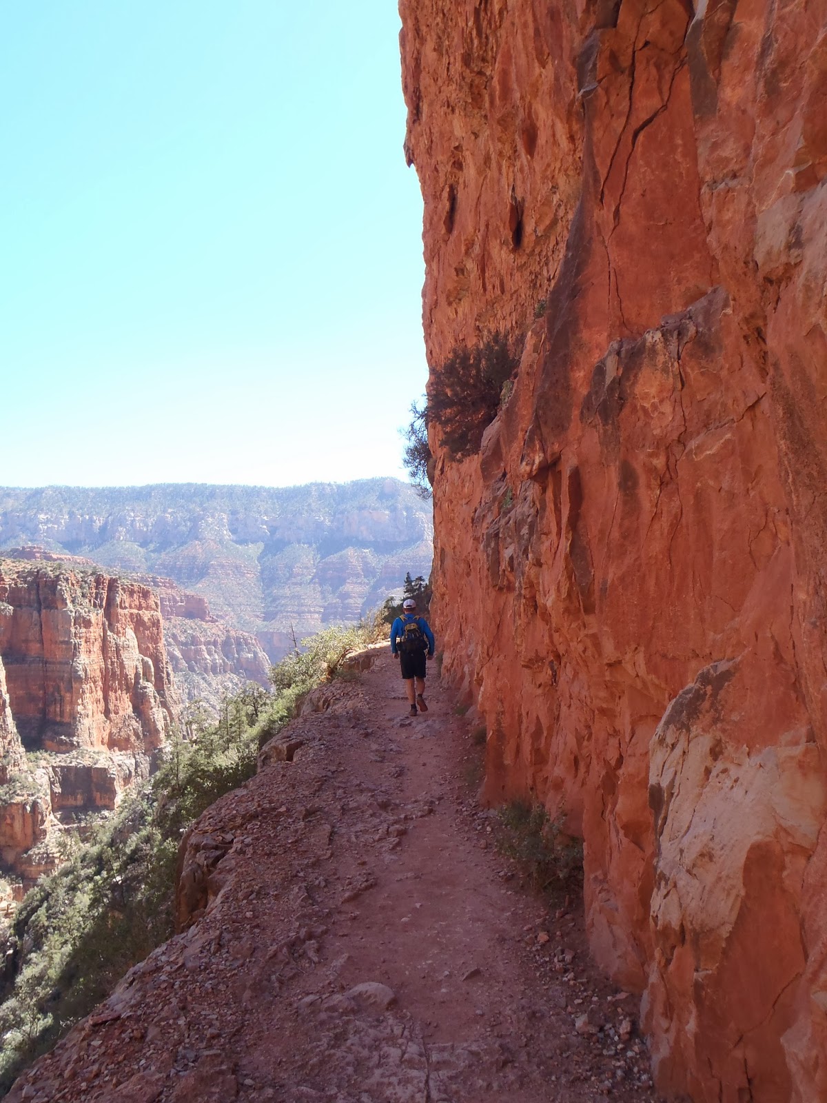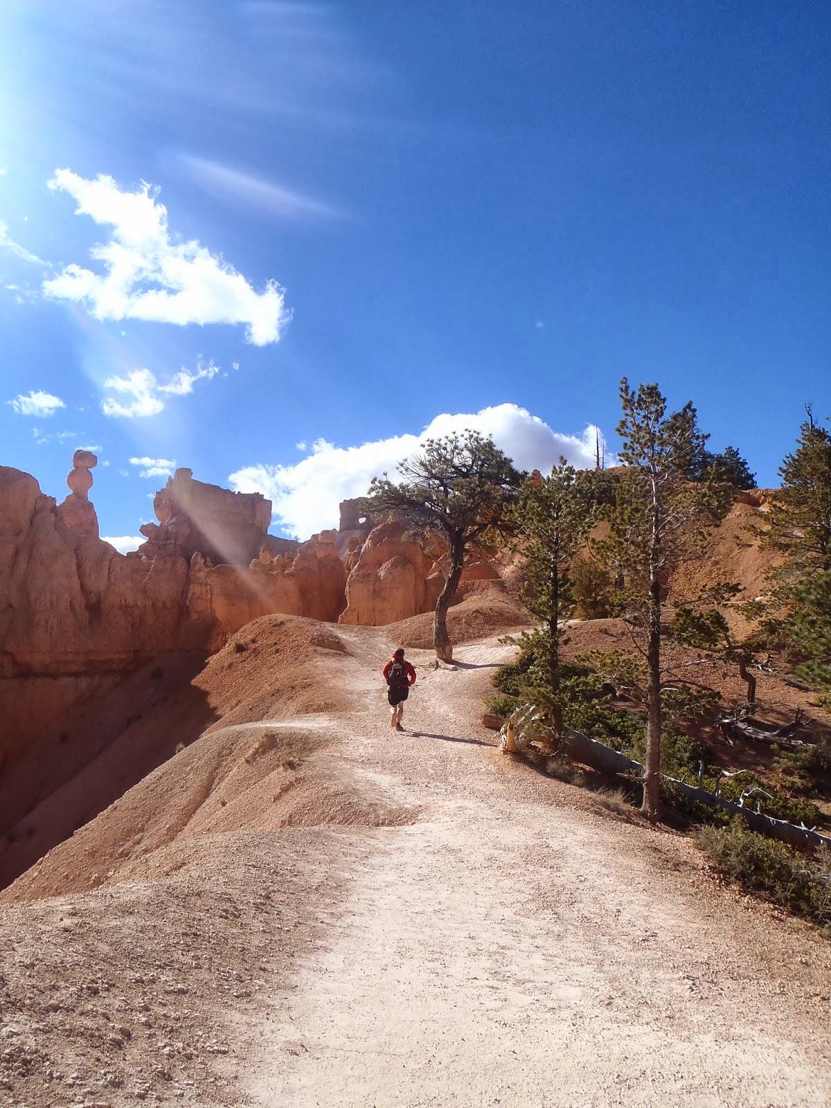 Neil and I recently returned from a trip that took us to the Grand Canyon (North Rim), Zion National Park, Bryce Canyon and the Canadian Rockies (Banff, Lake Louise and Emerald Lake). It was a very active vacation! The North Rim of the Grand Canyon Our cabin where we stayed - it had some unwanted guests  - mice. We should have clued in with all the Hanta Virus warnings. We caught them eating Neil's Ginger Snaps at 3 AM. Good thing Neil is a rodent control expert and was able to chase them out and secure us a few hours more of sleep.   The Lodge at the North Rim - beautiful big rooms for nightly entertainment and views of the canyon.  Sitting on a stone wall at the Lodge - spectacular views.  Neil enjoying the views on the Adirondack chairs at the lodge. Heading down the North Kaibob Trail into Roaring Springs Canyon which leads to the main Grand Canyon. Rock overhangs! It was fun running down on fresh legs. Last time we were here we had already completed Rim (South Rim) to Rim (North Rim) and were heading back to the South Rim. It was great to just enjoy the outing.   More Kaibob Trail. The trail continues across the canyon.   Large canyon walls - we look pretty small! Pathways to run on with drop offs - we stayed close to the walls! Almost done - the climb back up was tough (high altitude!)but not as bad as the last time. At the top of the trail on the North Rim. The North Rim has an Alpine forest at 8,700ft above sea level which is quite a contrast to the rest of the Grand Canyon.  It was a great out and back, fun running down and an awesome climb up. We went to Roaring Springs (the main water source for the whole Grand Canyon) and then turned around...our  plan was to get to Zion National Park before dark that day.  Zion National Park Climbing up Walters Wiggles - this was fun! 21 steep switch backs that are a marvel of trail engineering.  We hiked/ran down here on our last trip - the Zion traverse, at the end of our long journey in May. Great to revisit on fresh legs.  Switch back!  The trail up Walters Wiggles takes you to the trail to Angels Landing. This is the most popular trail in Zion National Park.  It was very busy with tourists, many griping the support chain for dear life as they made their way up and down.  Good thing the chain was there as the drop offs were severe - 1,500ft straight down to the canyon floor!   High walls of rock.  Plenty of slickrock to play on.  Plenty of squirrels around - last visit Dave dropped his pack before the climb up the North Rim and the little critters chewed through his pack and ate his Fig Newtons. Looks like this guy was eating bread - another tourists lunch.  The trail to the Narrows - you can start your canyon water experiences from here.  The sport activity is called Canyoneering where you wade or swim through water using the riverbed as your trail.   Bryce National Park   From Zion National Park, we enjoyed a day trip to Bryce National Park, just over a 2 hour drive away.   The Lodge at Bryce Canyon. There is accommodation in the rustic lodge or you can stay in a cabin close by.   There is a path from the lodge that takes you to this overlook of Bryce Canyon below. You would have no clue this view was there unless you come and stood on the canyon rim. Many trails to explore! We chose the Fairyland Rim Trail which provided us with spectacular views of the many formations in the canyon and the Queens Garden trail that took us down into the canyon and up showing us many incredible rock formations... one of which is said to resemble Queen Victoria. It actually did! Views from the Rim Trail. A perfect hole in the rock to frame the perfect picture!  Lighter coloured rock on the other side. Having a seat on an inviting rock to take it all in. Neil running up to the Bryce Canyon Lodge - a tourist shouted out "show off|".                                                                                                                                                                                                                                                                                                                                                                                                                                                                                                                                                                                                                                                                                                                                                                                                                                                                                                                                                                                                                                                                                                   